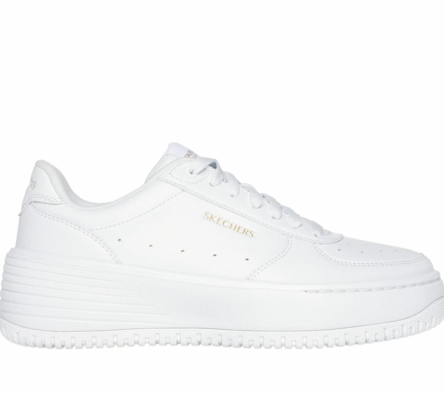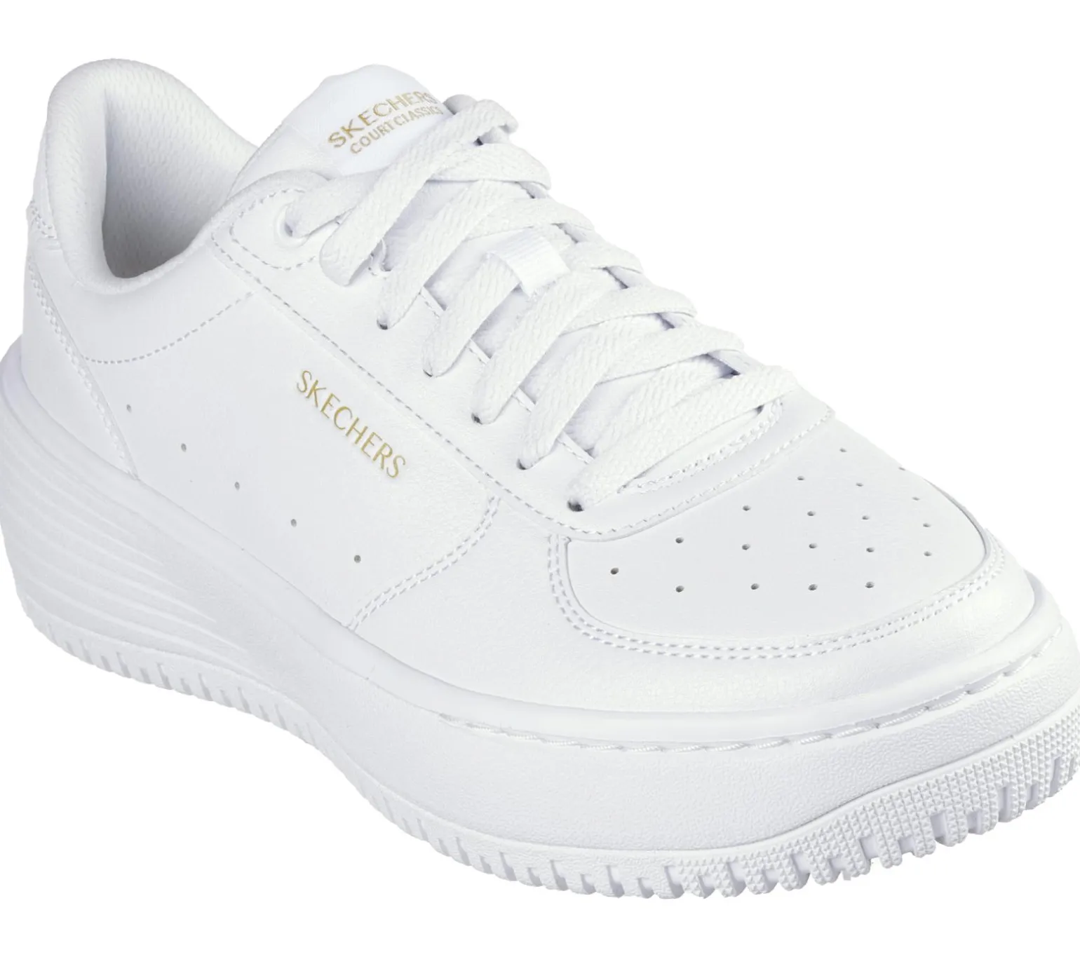 Update your look with a wardrobe classic in Skechers Grand 92 – Be Lifted. Featuring a clean court silhouette, lace-up duraleather upper, a cushioned Skechers Air-Cooled Memory Foam® insole, and a bold platform midsole.