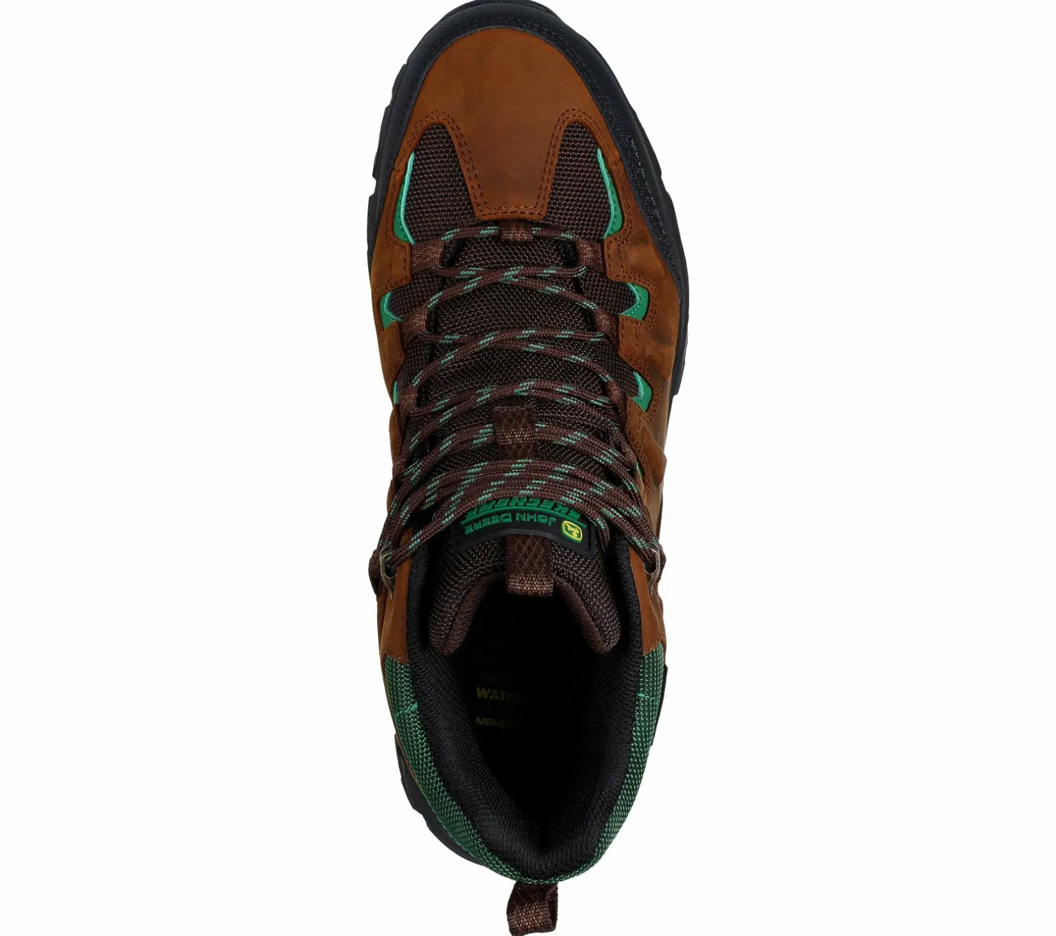 Stay supported in all-day comfort with Skechers x John Deere: Relaxed Fit® Rickter – Tasker. This waterproof mid-top outdoor work boot features a lace-up leather and mesh with synthetic overlays and a cushioned Skechers Air-Cooled Memory Foam® insole.