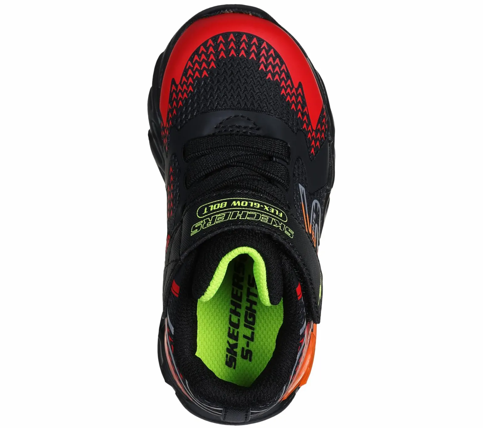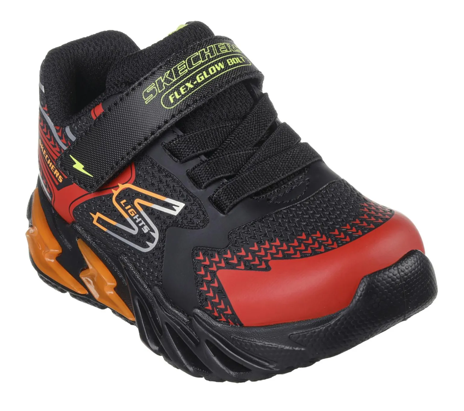Gear up with light-up style and comfort wearing Skechers S-Lights®: Flex-Glow Bolt. This lighted design features a mesh and synthetic upper with stretch laces, adjustable instep strap and a cushioned comfort insole.