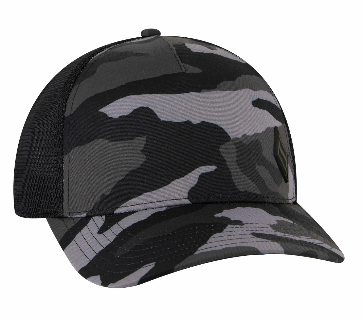 Keep a cool and classic look around with the Skechers Blackout Diamond Trucker Hat. Featuring a camo print fabric and mesh fabric with a diamond logo design.