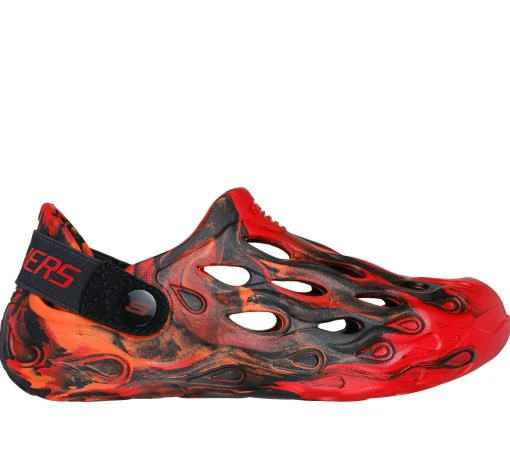 Fiery style combine with easy-wearing comfort in Skechers Foamies®: Thermo-Rush – Lavamorphic. This sculpted slip-on features a flexible perforated EVA upper in a flame themed design.