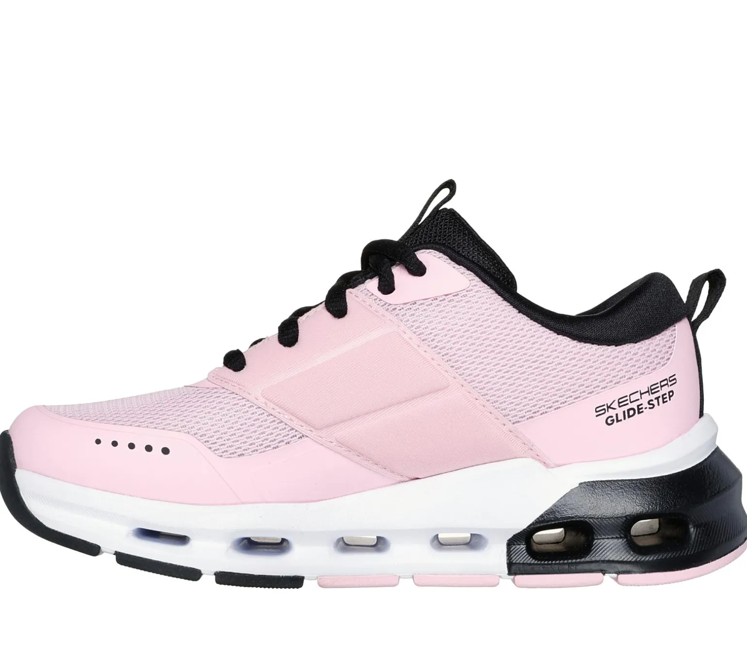 Play all day with added comfort in Skechers Glide-Step® . This sporty lace-up features a mesh and padded synthetic quarter brace upper with a cushioned Glide-Step® geometric midsole and a Skechers Air-Cooled Goga Matcomfort insole.