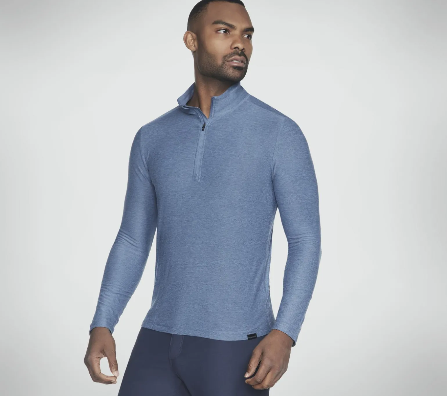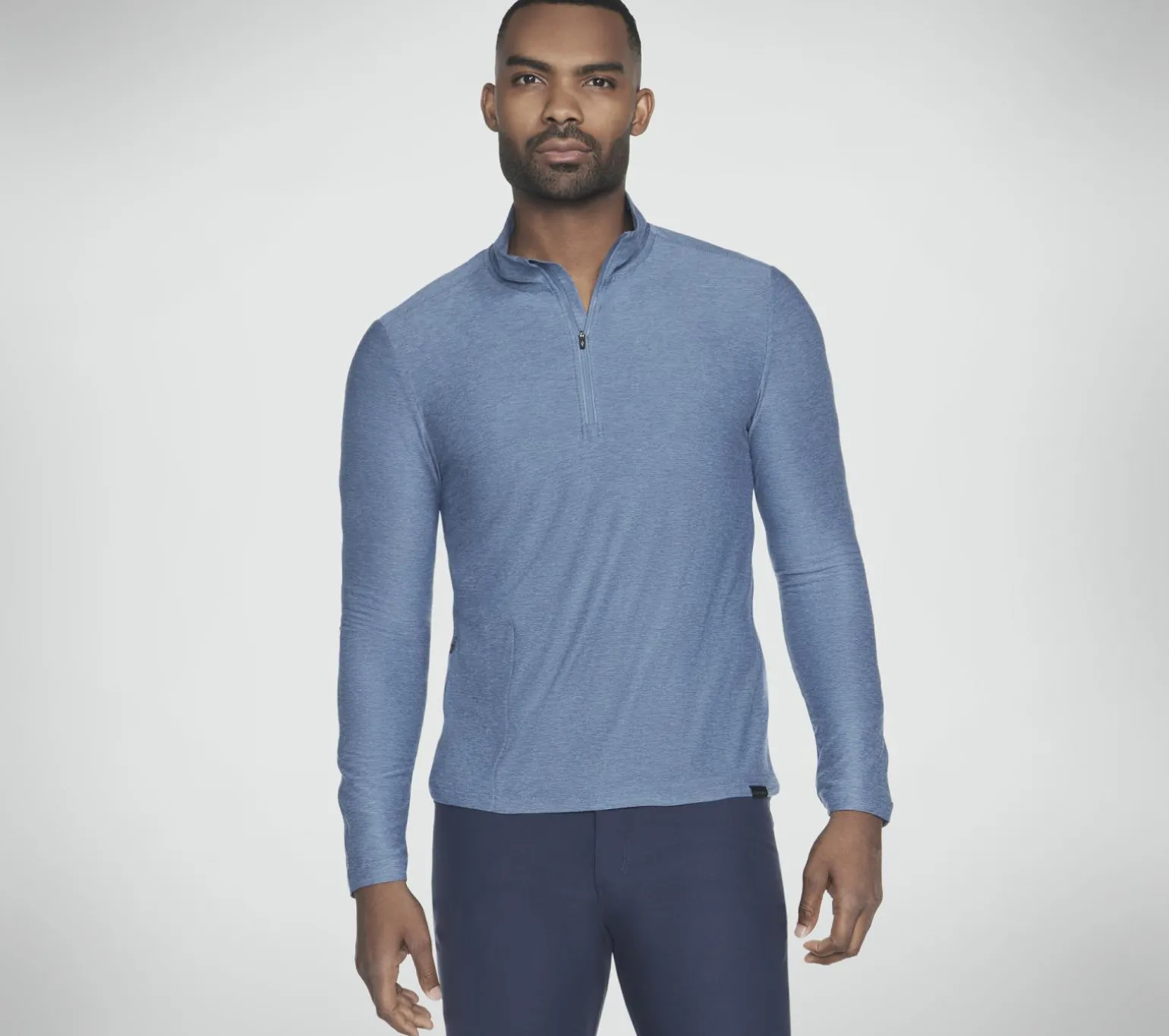 Good-natured comfort and style combine in the essential Skechers GO DRI® All Day 1/4 Zip. Designed with recycled materials, this pullover features a soft lightweight GO DRI® ALL DAY jersey fabric, mock neck with 1/4 zip front, and a front zip pocket.