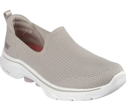 Walk in easy-wearing comfort with Skechers GO WALK 7 – Ivy. This laceless vegan design features a stretch knit upper with a Skechers Air-Cooled Goga Mat insole, lightweight ULTRA GO® cushioning, and high-rebound Hyper Pillar Technology for added support.