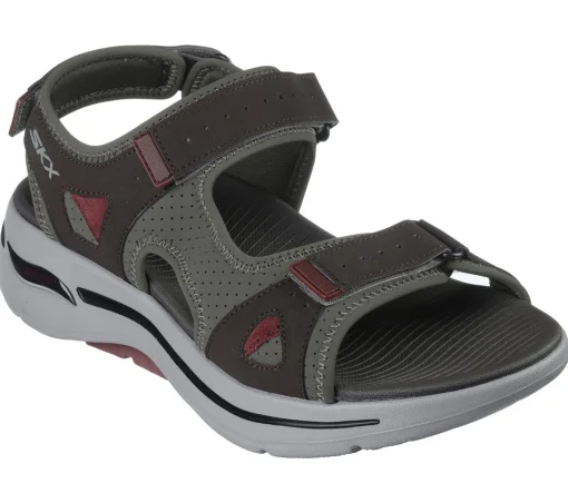 Supportive all-day comfort arrive in Skechers GO WALK® Arch Fit® Sandal – Mission II. This sporty sandal has been granted the APMA Seal of Acceptance. Featuring a synthetic perforated upper, adjustable strap closures, lightweight ULTRA GO® cushioning, and a contoured Goga Mat® footbed with podiatrist-certified Arch Fit® support.