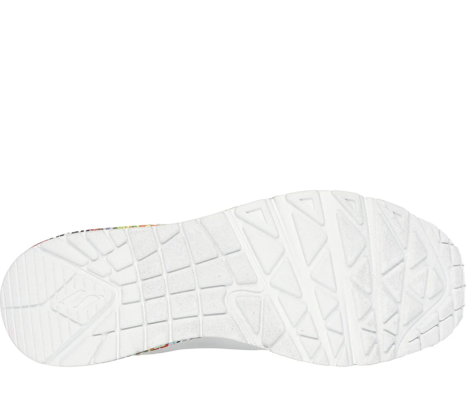 Jen Stark brings her hypnotic and captivating colorful patterns to Skechers Street in this creative collaboration. The eye-catching Skechers Street x Jen Stark: Uno – Stark Mini Drip features a smooth durabuck upper with the artist’s signature drip design printed on the midsole, lining, and laces. This design is complete with a Skechers Air-Cooled Memory Foam® insole, and visible Skech-Air® airbag midsole.