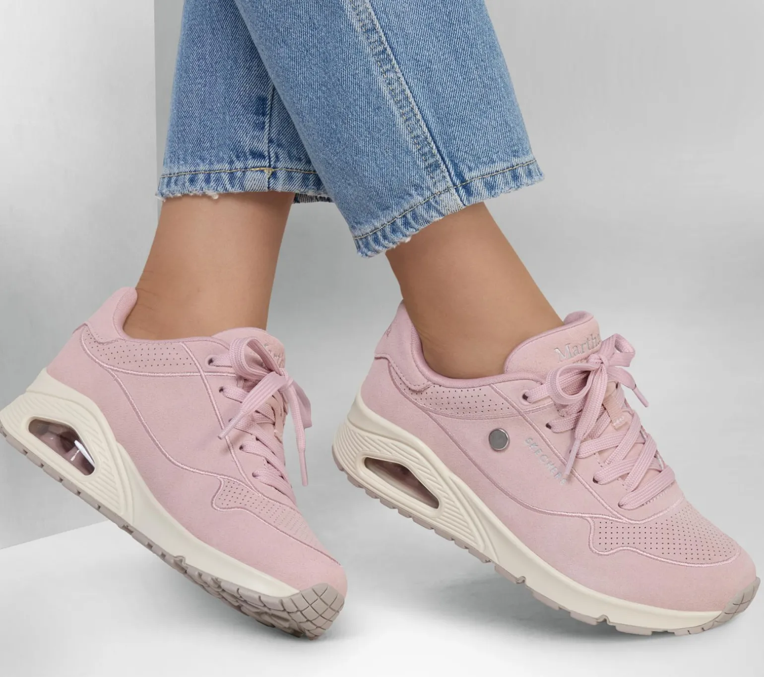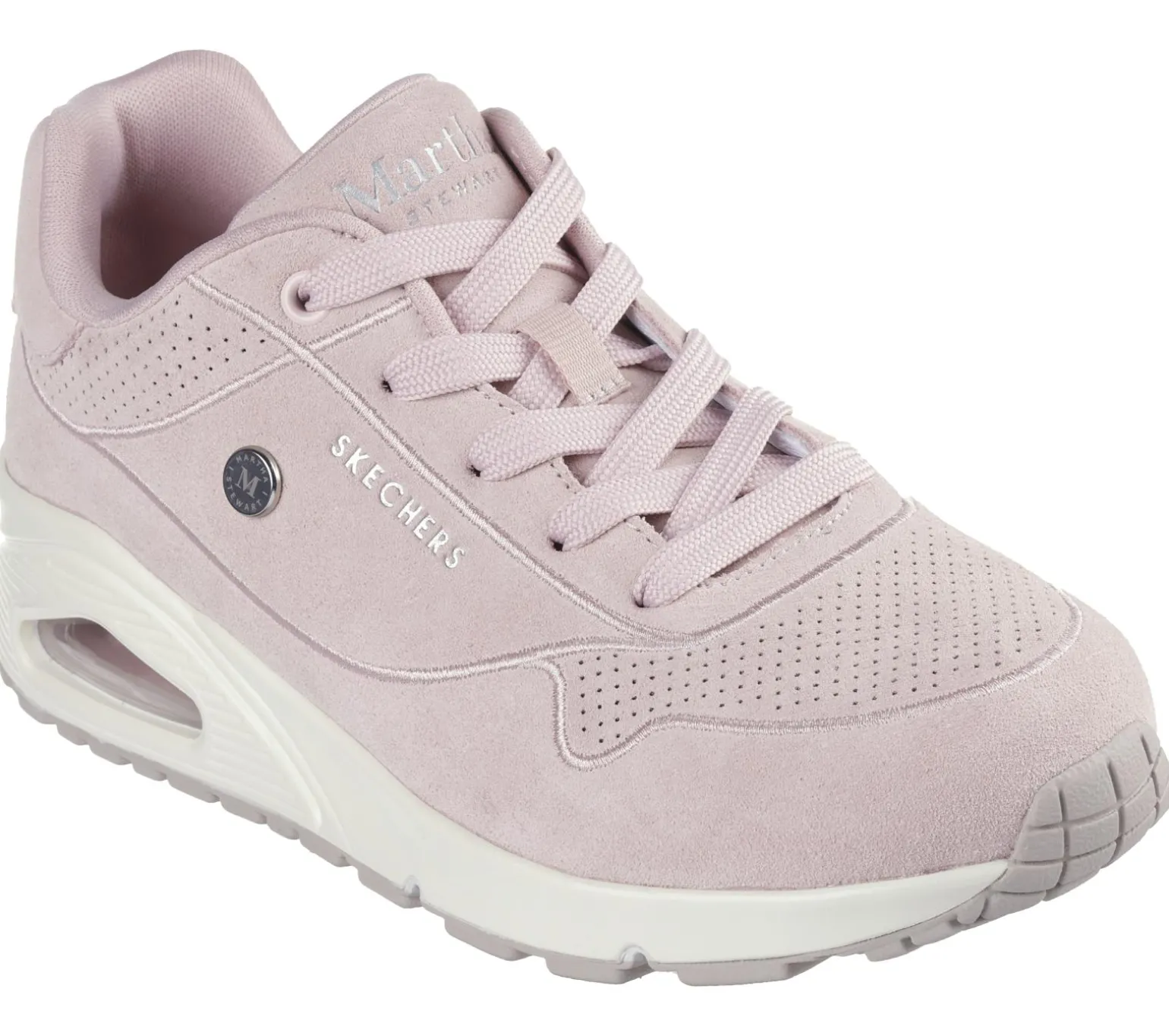 Celebrated lifestyle expert, Martha Stewart, delivers her one-of-a-kind touch to Skechers in this spirited collaboration. Shine on in fashionable flair wearing Martha Stewart x Skechers Street: Uno – County Line. This fashion sneaker features a lace-up suede upper with perforated details, Skechers Air-Cooled Memory Foam® insole and a visible Skech-Air® airbag.