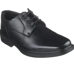 Add a new level of comfort to your dress shoe look with Skechers Miller – Enrico. This Classic Fit Oxford design features a smooth leather upper with a lace-up front and a Skechers Air-Cooled Memory Foam® insole.