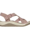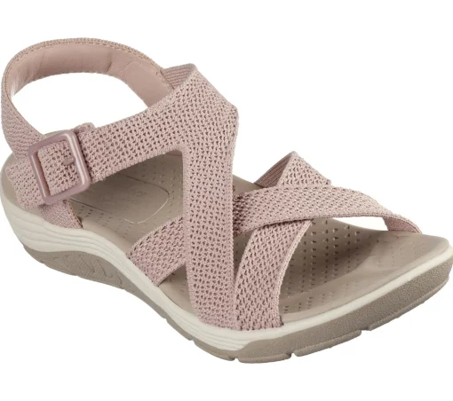 Ease back with style and summery comfort in Skechers Reggae Cup – Clean Lines. This strappy vegan sandal features a Stretch Fit® knit upper with a buckled instep strap closure, Arch Comfort® contoured footbed, and supportive Reggae midsole.