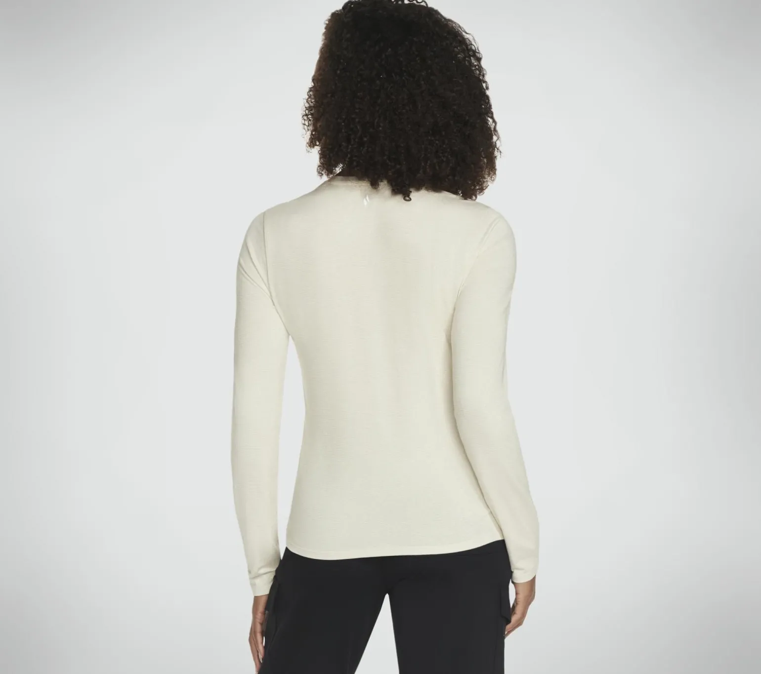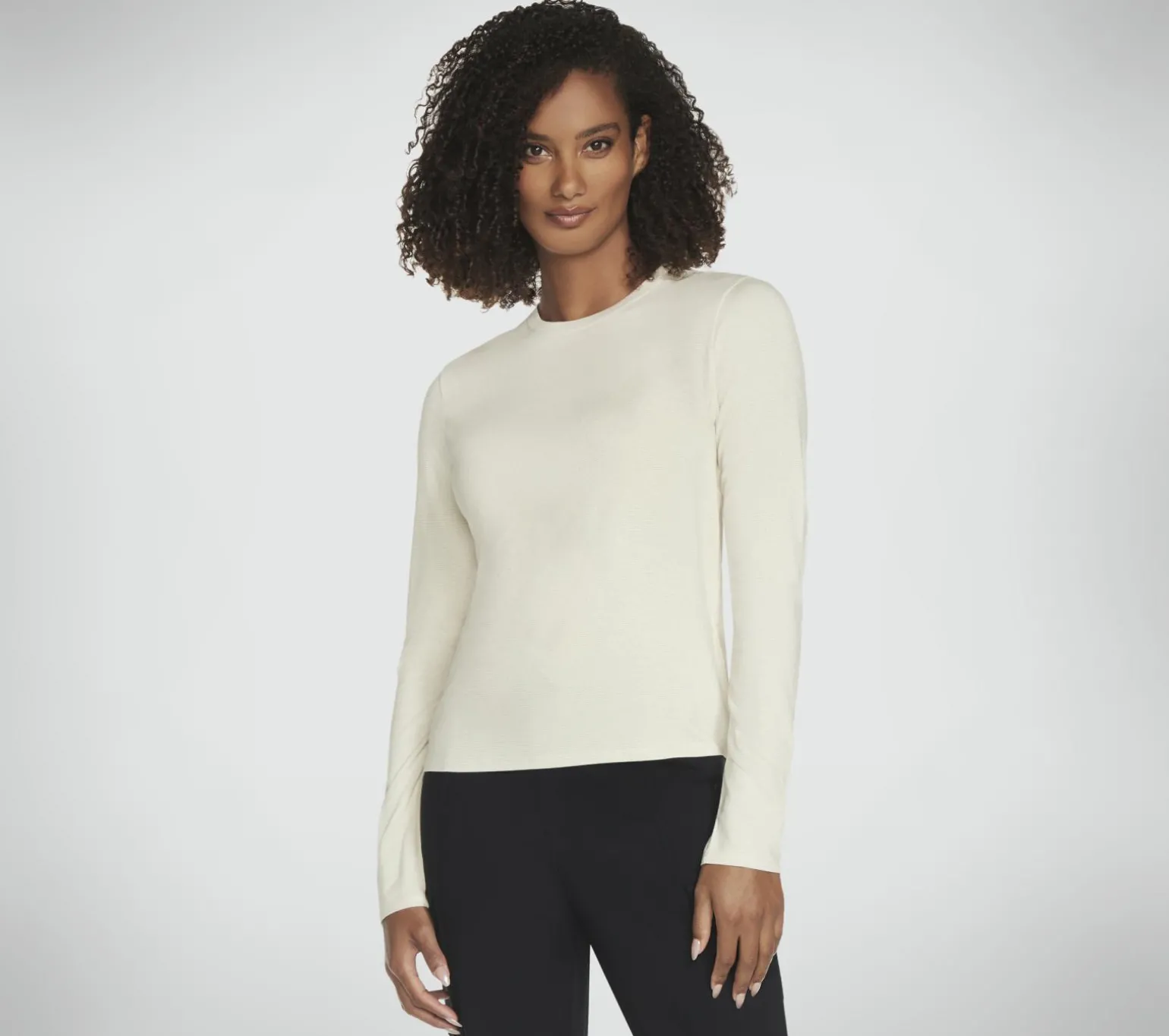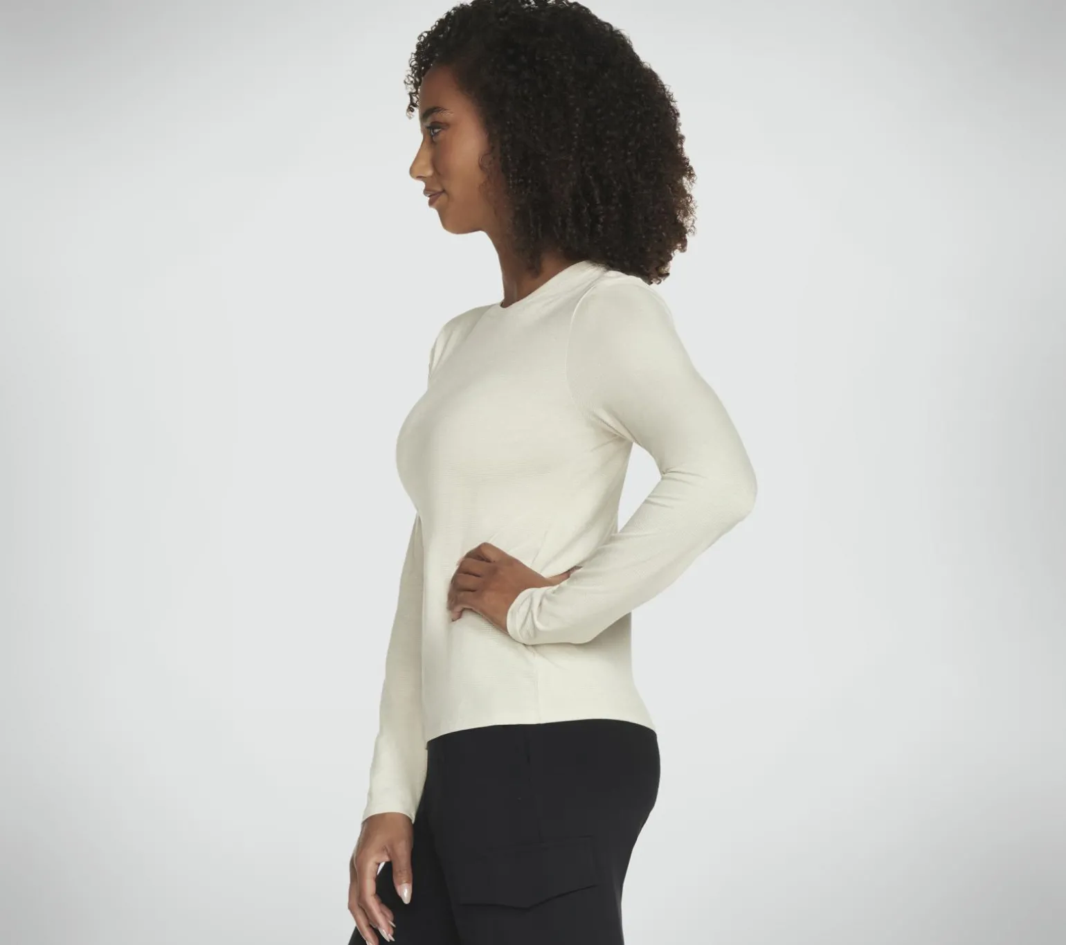 Comfort and glam style combine for the perfect look in Skechers Shimmer Stripe Long Sleeve. This striped sparkle knit top features a crew neckline and long sleeves.