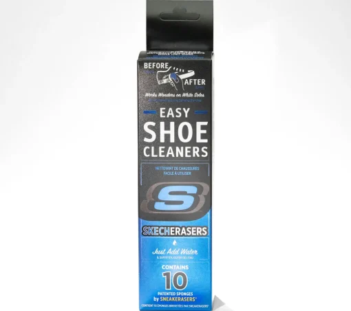 Brighten and clean your shoes with SkechErasers Shoe Cleaner. This 10-pack of shoe cleaning sponges easily scrubs away scuff marks and dirt from shoes – simply add water.