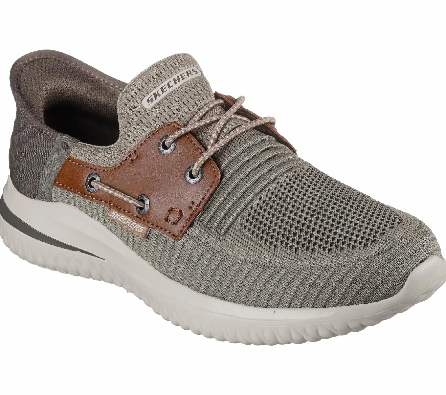 Simply step in and go wearing Skechers Hands Free Slip-ins®: Delson 3.0 – Roth. Designed with our exclusive Heel Pillow. This Classic Fit style features an engineered knit and synthetic upper with stretch laces, a Skechers Air-Cooled Memory Foam® comfort insole and Goga Mat Arch cushioning for added support.