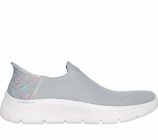 Step-in to convenient walking comfort and cushioning wearing Skechers Hands Free Slip-ins® GO WALK® Flex – Sunset Rose. This vegan slip-on features a knit mesh upper with a floral print heel, our exclusive Skechers Slip-ins® molded Heel Pillow, Skechers Air-Cooled Memory Foam® insole, lightweight ULTRA GO® cushioning, and Flex Pillars for added movement.
