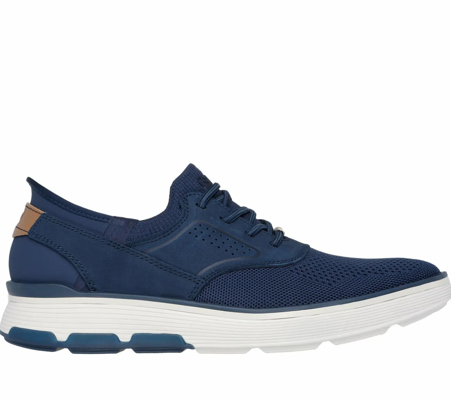 Effortless style and elevated design combine in Skechers Hands Free Slip-ins® Mark Nason® Skechers: Casual Glide Cell – Wester. Featuring a nubuck leather and knitted upper with stretch laces, and a Memory Foam Lux insole.