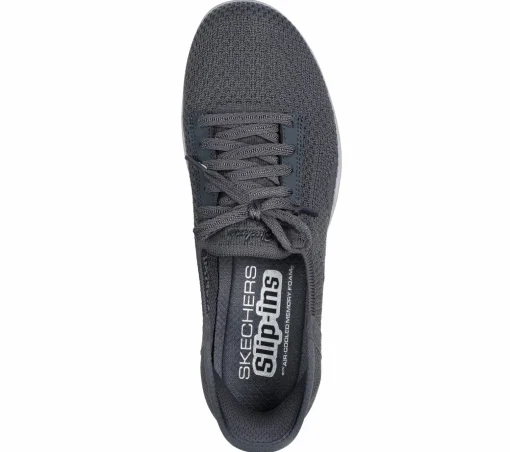 Step into stylish comfort with Skechers Hands Free Slip-ins®: Newbury St – Our Time. Featuring a shimmery knit upper with adjustable laces, our exclusive Heel Pillow, and a cushioned Skechers Air-Cooled Memory Foam® insole.