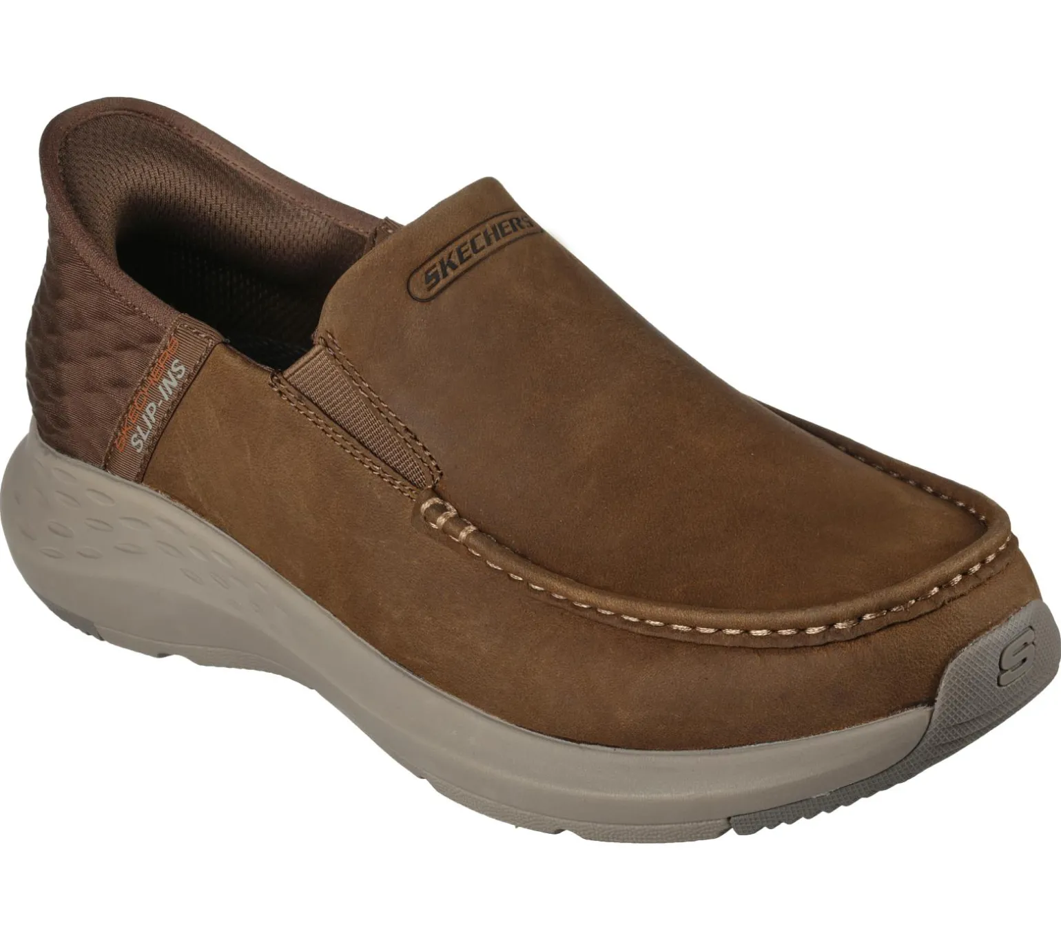 Step into easy-wearing comfort and classic style with Skechers Hands Free Slip-ins® Relaxed Fit®: Parson – Oswin. Designed with an exclusive Heel Pillow, this laceless fit moc toe style features a Skechers Slip-ins® molded heel panel, leather upper, Skechers Air-Cooled Memory Foam® insole, and Goga Mat Arch cushioning for added support
