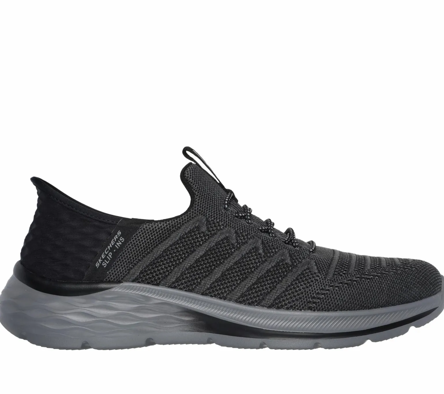 Simply step into flexible comfort wearing Skechers Slip-ins® Relaxed Fit®: Garner – Orston. Designed with our exclusive Heel Pillow, this roomy vegan style features a knitted upper with stretch laces, a charcoal-infused Skechers Air-Cooled Memory Foam® insole, and Goga Mat Arch cushioning for added support.