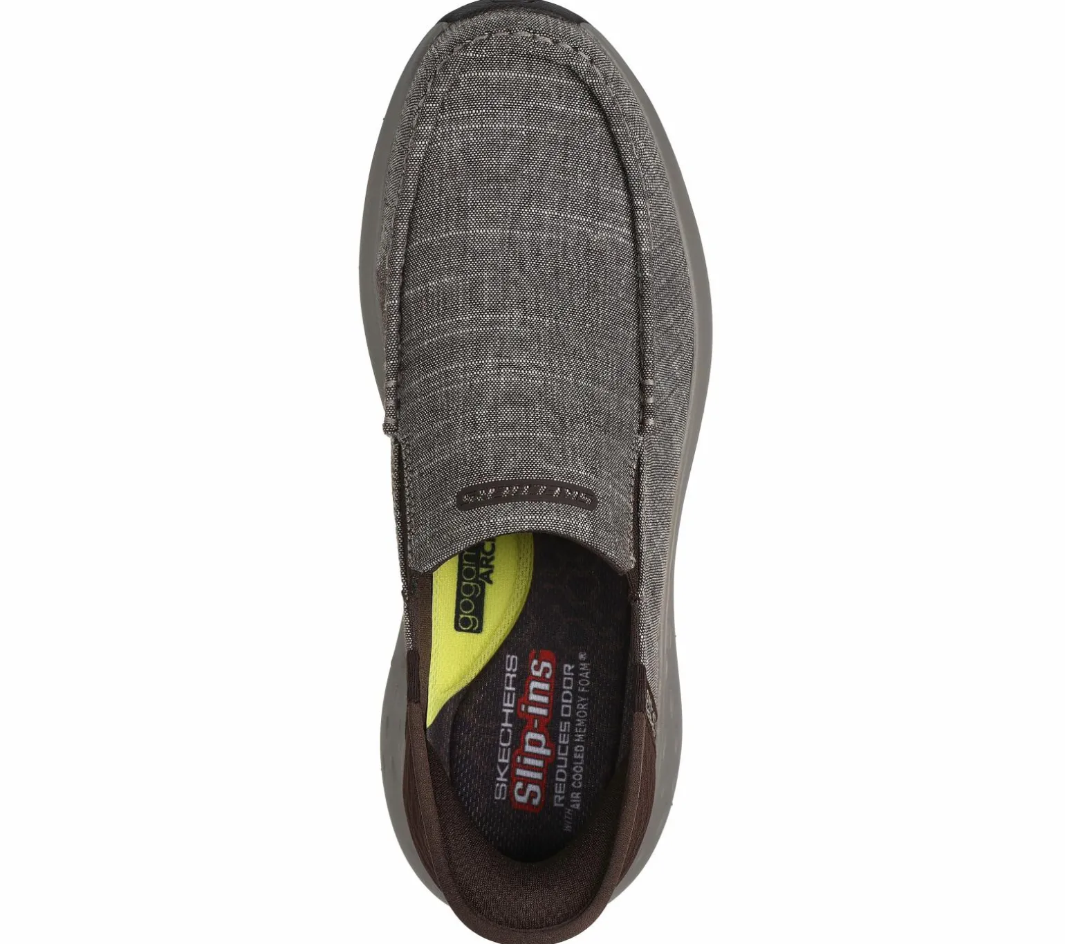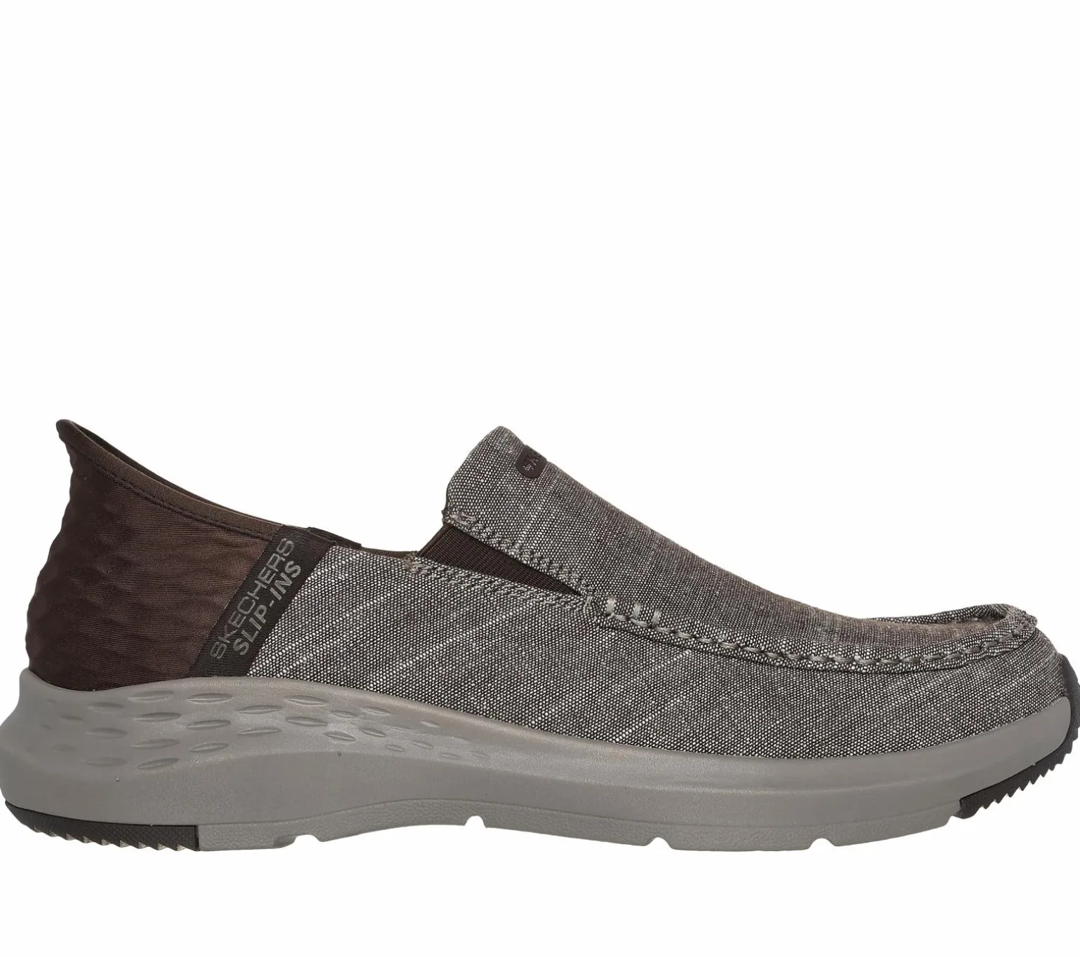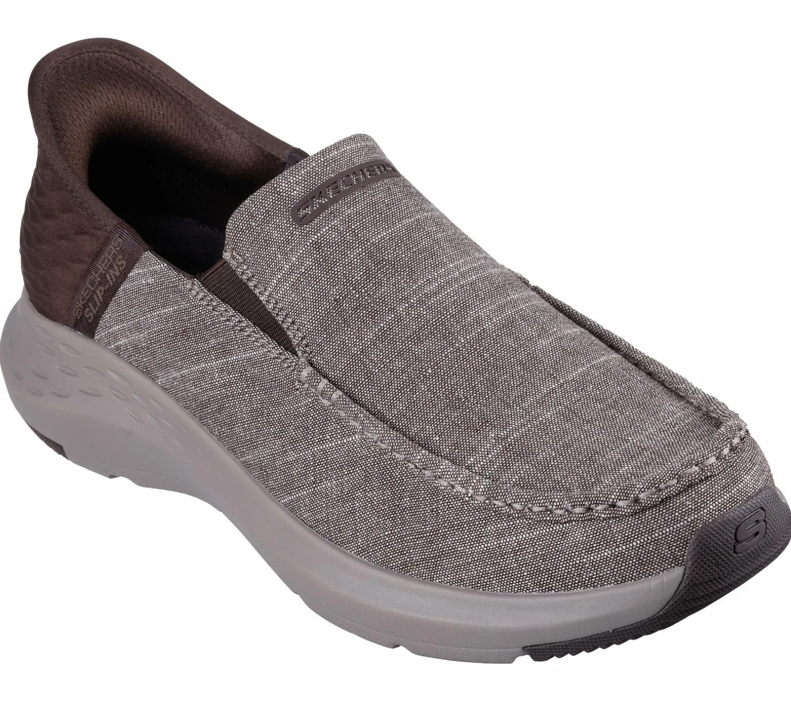 Simply step in and go wearing Skechers Hands Free Slip-ins® Relaxed Fit®: Parson – Faustino. Designed with our exclusive Heel Pillow, this laceless style features a canvas upper with twin gore panels for ease of wear, a charcoal infused Skechers Air-Cooled Memory Foam® insole, and Goga Mat Arch cushioning for added support.