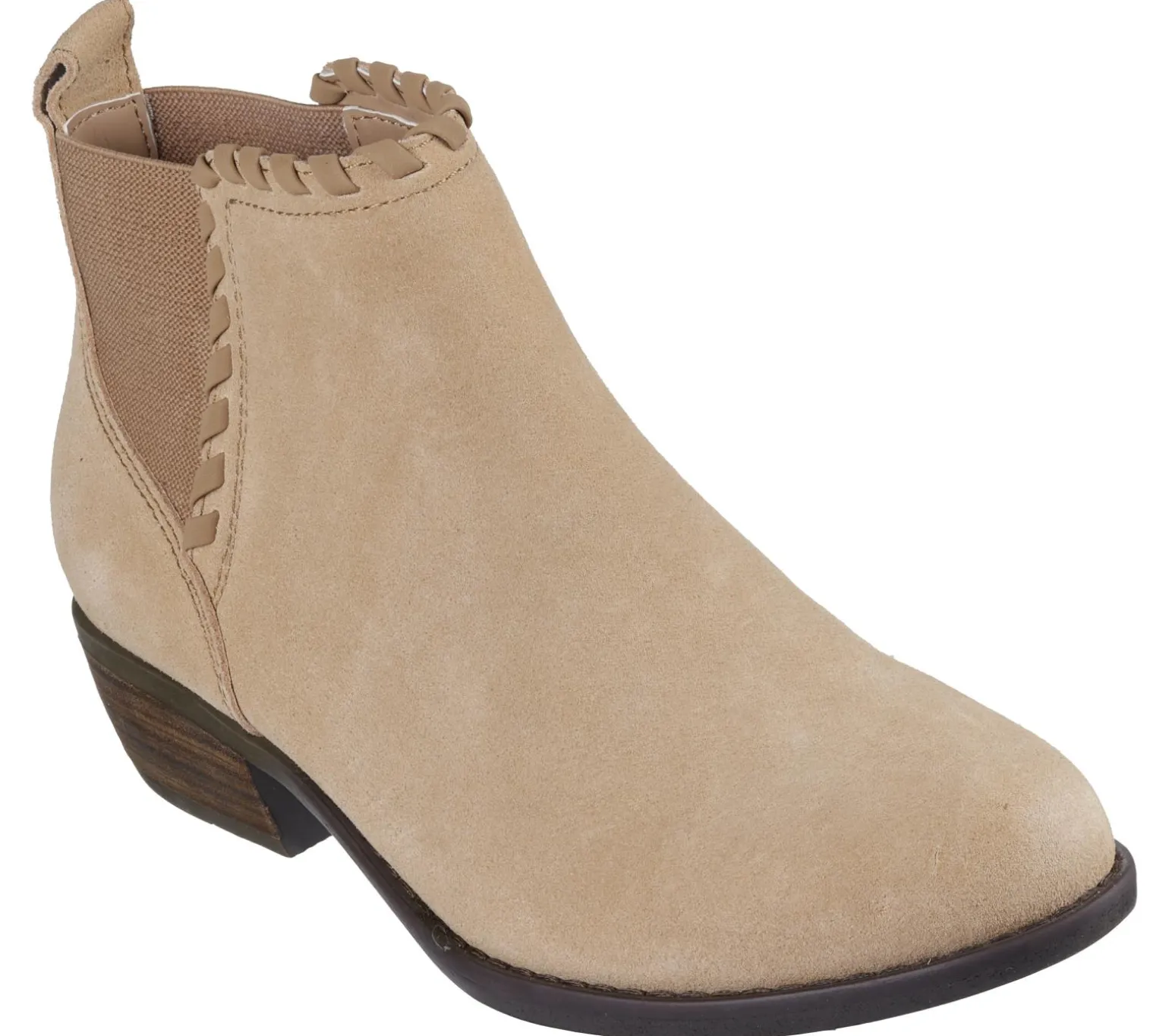Western-inspired looks and modern comfort combine in Skechers Texas – Outskirts. This pull-on Chelsea-style ankle boot features a 3M® Scotchgard® treated suede upper with whip-stitched trim and a cushioned Skechers Memory Foam insole.