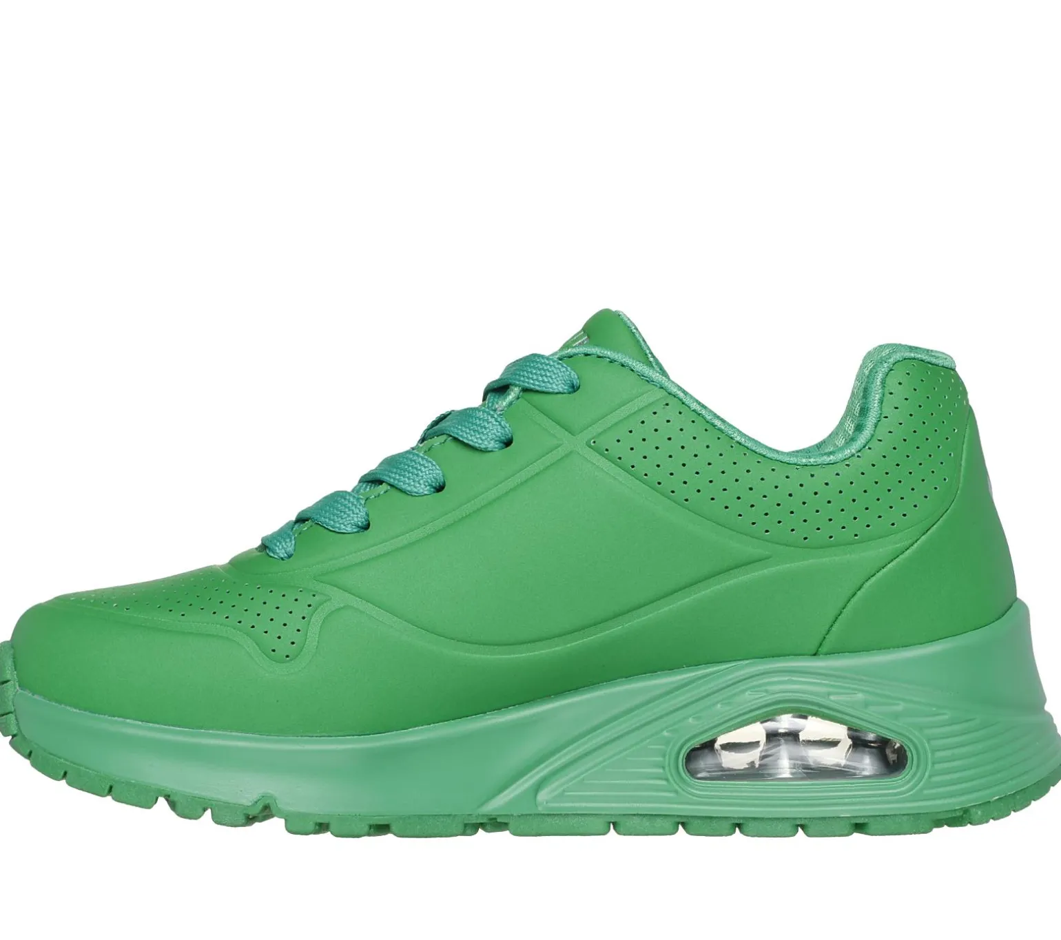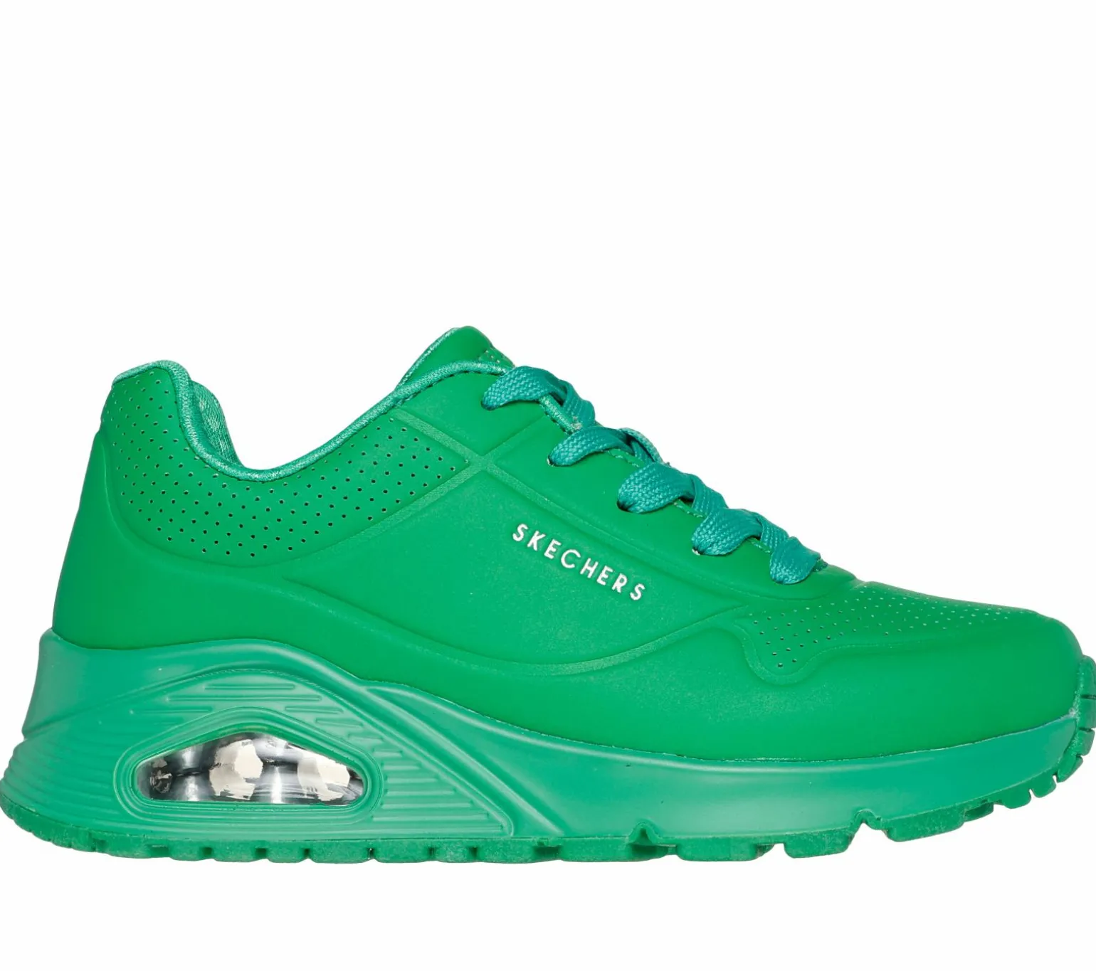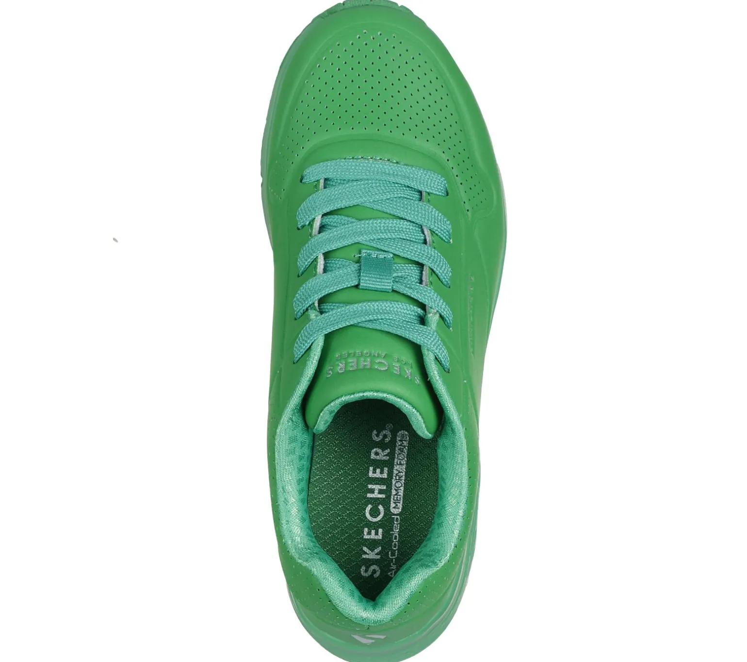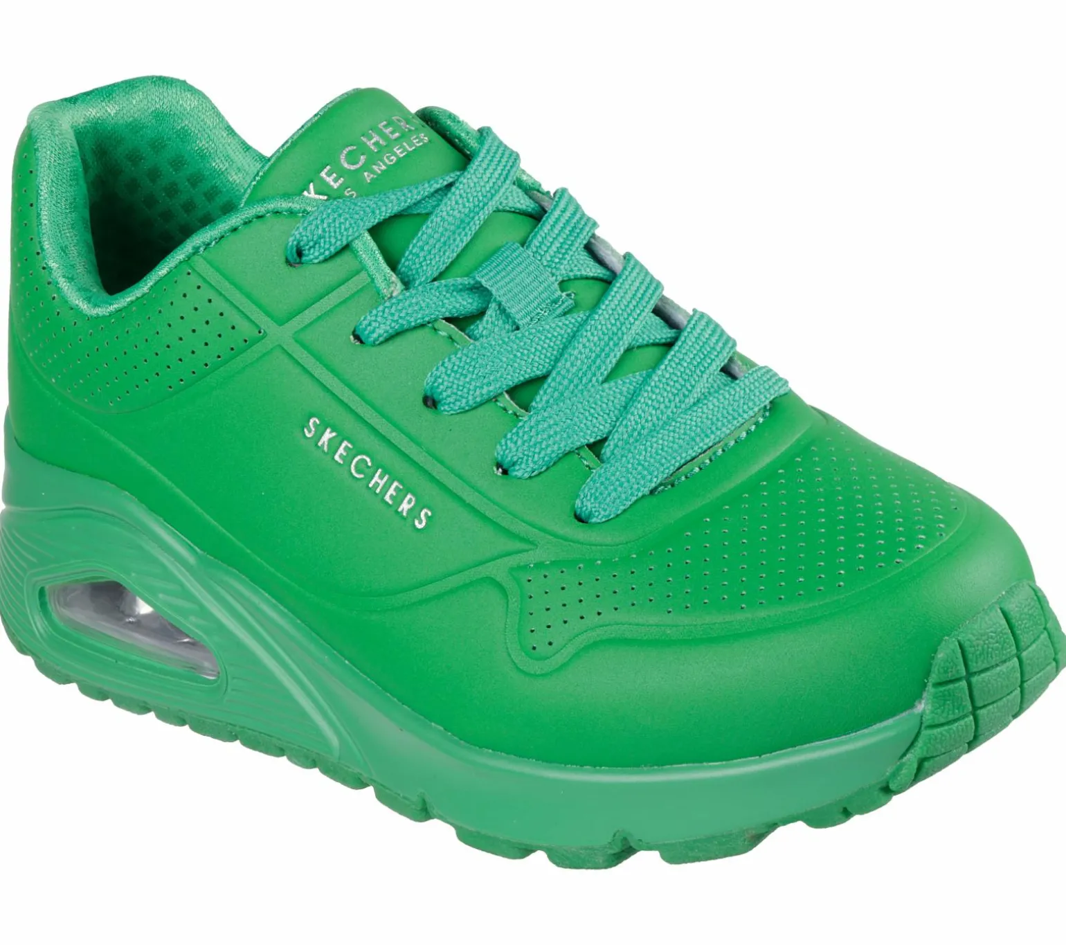 Bring on the neon, bring on the comfort wearing Skechers Street Uno Gen1 – Neon Glow. This lace-up fashion sneaker features a neon synthetic perforated durabuck upper with a cushioned Skechers Air-Cooled Memory Foam® comfort insole.
