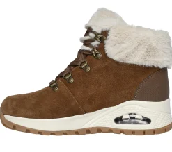 Step into stylish hiker vibes with Skechers Street Uno Rugged – Moonlight Ridge. This lace-up fashion sneaker boot features a suede upper with faux-fur trim, a Skechers Air-Cooled Memory Foam® insole, and a Skech-Air® visible airbag midsole.