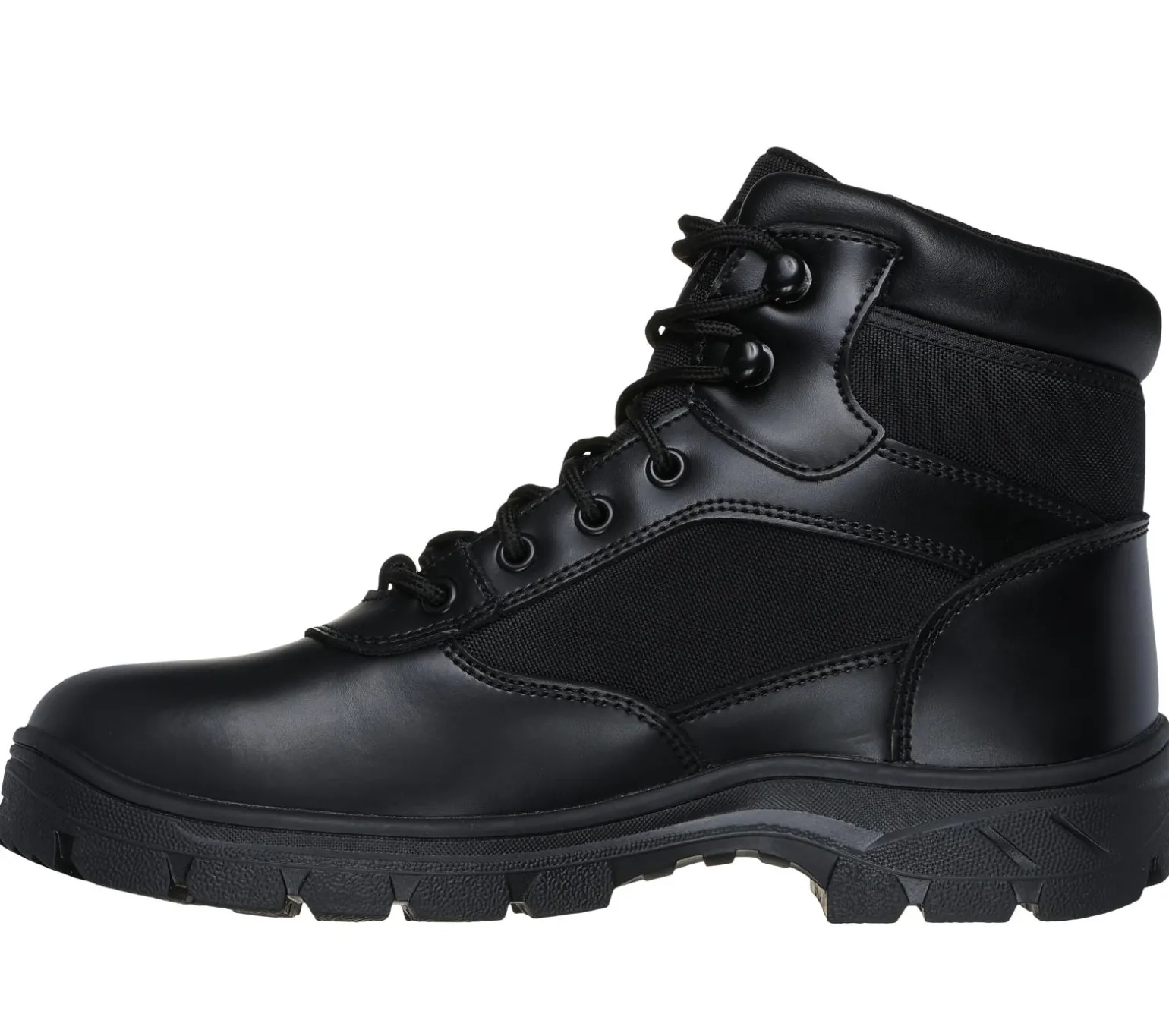 Stay vigilant in comfort and rugged style wearing Skechers Work: Wascana – Benen WP Tactical. This waterproof tactical boot features a smooth leather and durable mesh fabric upper with a cushioned Skechers Memory Foam insole.